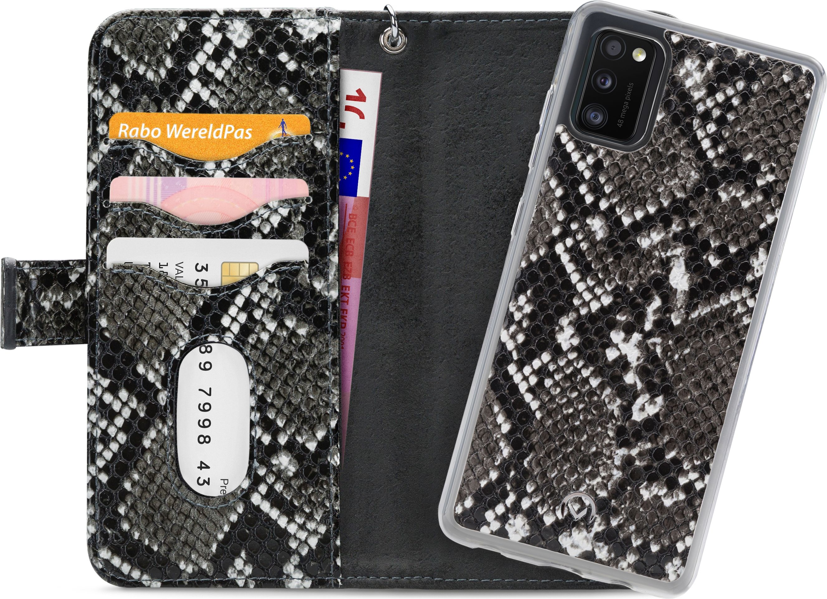 Combineer de stijl en bescherming van een Samsung Galaxy A41 clutch en de handzaamheid van een backcover met de Samsung Galaxy A41 Gelly Zipper 2in1 clutch van Mobilize in de uitvoering zwart. Het backcover hoesje zit met een magneet vast in de clutch en kan desgewenst ook apart gebruikt worden.