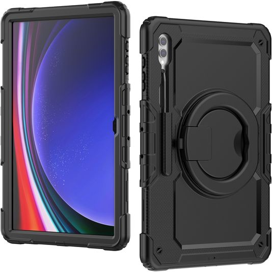 Mobilize Rotating Defender Samsung Galaxy Tab S10 Ultra Hoes Hard Kunststof,Siliconen Backcover + Schouderband + Standaard - Zwart