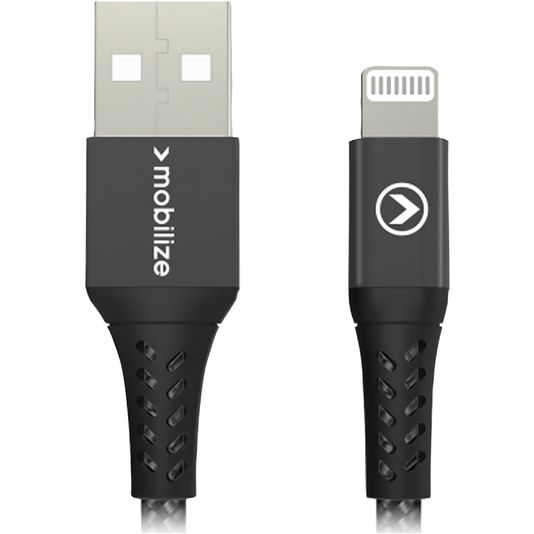 Mobilize Strong Nylon USB-A naar Apple Lightning Kabel MFI 0.2 Meter - Zwart