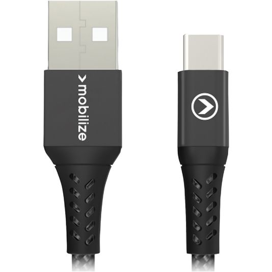 Mobilize Strong Nylon USB-A naar USB-C Kabel 0.2 Meter - Zwart