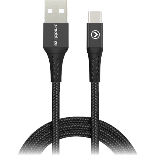 Mobilize Strong Nylon USB-A naar USB-C Kabel 1 Meter - Zwart