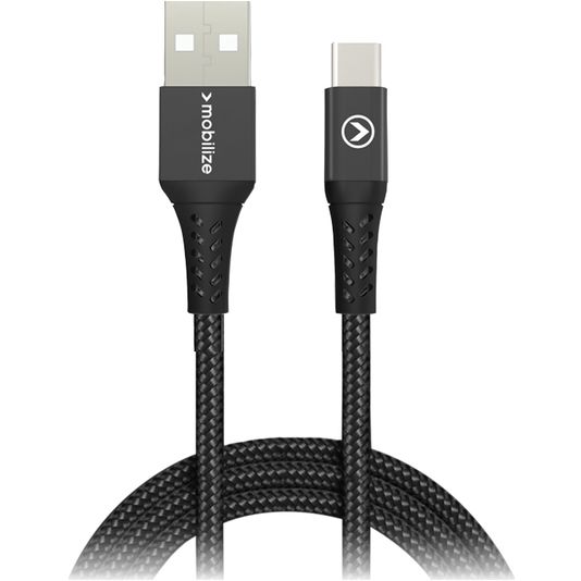 Mobilize Strong Nylon USB-A naar USB-C Kabel 2 Meter - Zwart