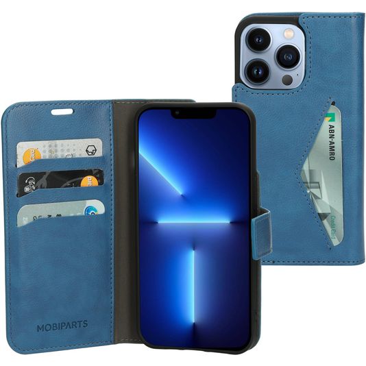 Wil je een Apple iPhone 13 Pro hoesje met volledige bescherming rondom en een stijlvol en praktisch design? Dan is dit Mobiparts Classic Wallet bookcase hoesje voor Apple iPhone 13 Pro de perfecte keuze. Het booktype hoesje is gemaakt van hoogwaardig kunstleer en uitgevoerd in de kleur steel blue. Met een boek hoesje is je Apple iPhone 13 Pro rondom goed beschermd, inclusief het kwetsbare scherm. De voorklep opent opzij als een boek en sluit stevig met een magnetische sluiting. Er is ruimte voor 4 pasjes zodat je altijd je bankpas of ID bij de hand hebt.