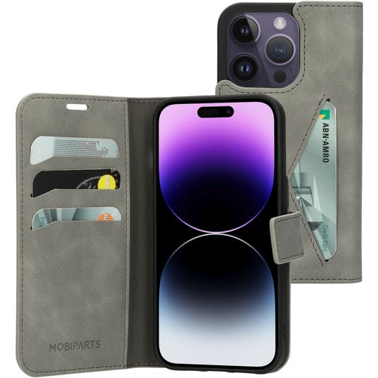 Wil je een Apple iPhone 14 Pro hoesje met volledige bescherming rondom en een stijlvol en praktisch design? Dan is dit Mobiparts Classic Wallet bookcase hoesje voor Apple iPhone 14 Pro de perfecte keuze. Het booktype hoesje is gemaakt van hoogwaardig kunstleer en uitgevoerd in de kleur granite grey. Met een boek hoesje is je Apple iPhone 14 Pro rondom goed beschermd, inclusief het kwetsbare scherm. De voorklep opent opzij als een boek en sluit stevig met een magnetische sluiting. Er is ruimte voor 4 pasjes zodat je altijd je bankpas of ID bij de hand hebt.