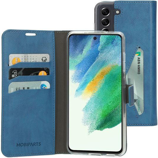 Wil je een Samsung Galaxy S21 FE hoesje met volledige bescherming rondom en een stijlvol en praktisch design? Dan is dit Mobiparts Classic Wallet bookcase hoesje voor Samsung Galaxy S21 FE de perfecte keuze. Het booktype hoesje is gemaakt van hoogwaardig kunstleer en uitgevoerd in de kleur steel blue. Met een boek hoesje is je Samsung Galaxy S21 FE rondom goed beschermd, inclusief het kwetsbare scherm. De voorklep opent opzij als een boek en sluit stevig met een magnetische sluiting. Er is ruimte voor 4 pasjes zodat je altijd je bankpas of ID bij de hand hebt.