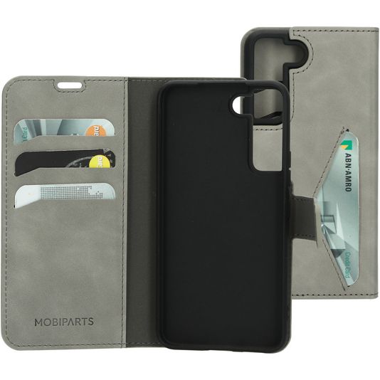 Wil je een Samsung Galaxy S22 hoesje met volledige bescherming rondom en een stijlvol en praktisch design? Dan is dit Mobiparts Classic Wallet bookcase hoesje voor Samsung Galaxy S22 de perfecte keuze. Het booktype hoesje is gemaakt van hoogwaardig kunstleer en uitgevoerd in de kleur granite grey. Met een boek hoesje is je Samsung Galaxy S22 rondom goed beschermd, inclusief het kwetsbare scherm. De voorklep opent opzij als een boek en sluit stevig met een magnetische sluiting. Er is ruimte voor 4 pasjes zodat je altijd je bankpas of ID bij de hand hebt.