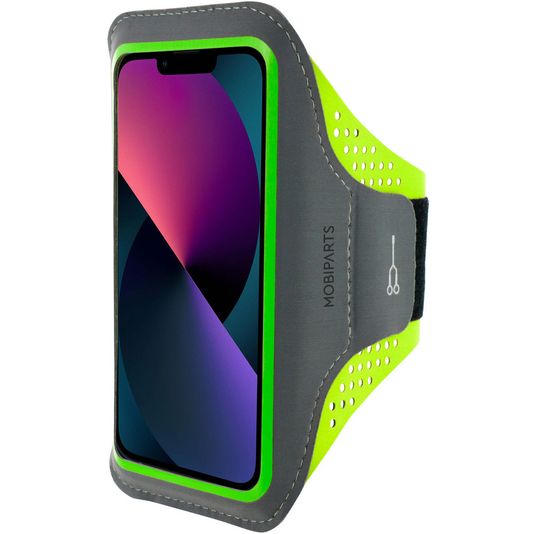 Mobiparts Comfort Fit Telefoonhouder Hardlopen iPhone 13 Mini Sport Hoesje Neopreen Sportarmband - Neon Green