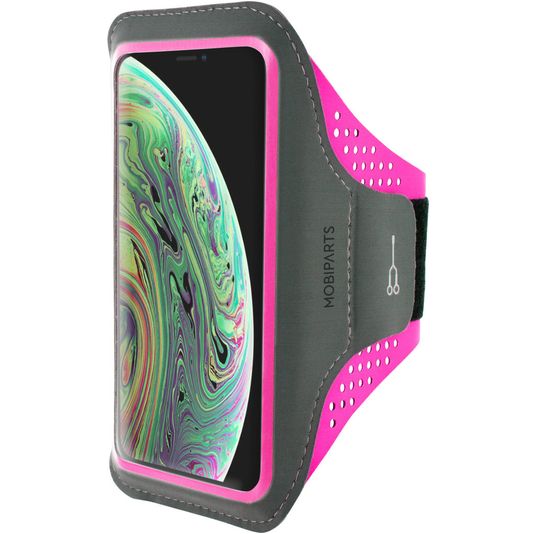 Mobiparts Comfort Fit Telefoonhouder Hardlopen iPhone X Sport Hoesje Neopreen Sportarmband - Neon Pink