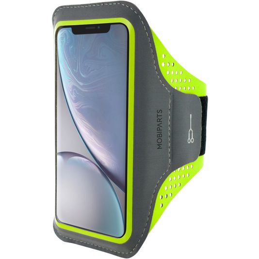 Mobiparts Comfort Fit Telefoonhouder Hardlopen iPhone XR Sport Hoesje Neopreen Sportarmband - Neon Green