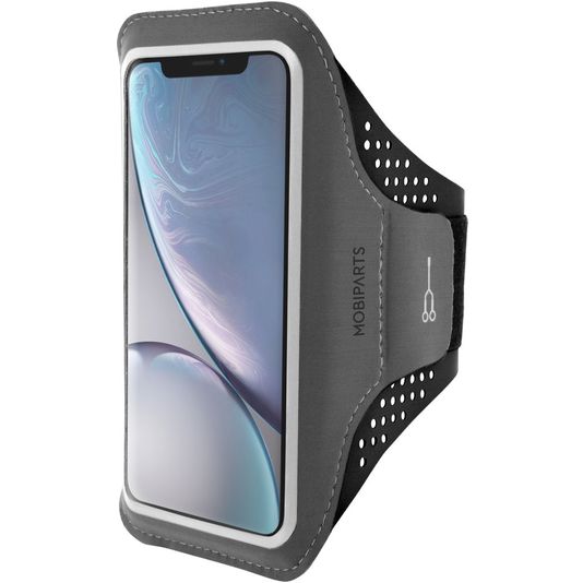 Mobiparts Comfort Fit Telefoonhouder Hardlopen iPhone XR Sport Hoesje Neopreen Sportarmband - Zwart
