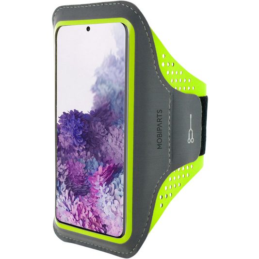 Neem jij je Samsung Galaxy S20 mee tijdens het sporten? Dan is deze Mobiparts Comfort Fit sportband in de kleur neon green echt wat voor jou! Met een Samsung Galaxy S20 sportband kun je voortaan veilig en comfortabel luisteren naar muziek of statistieken van je work-out bijhouden, terwijl je telefoon niet in de weg zit of kan vallen en beschadigen.