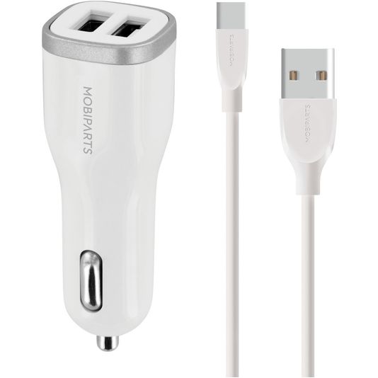 Mobiparts Dual USB Autolader USB-C 1 Meter 24W 4.8A - Wit