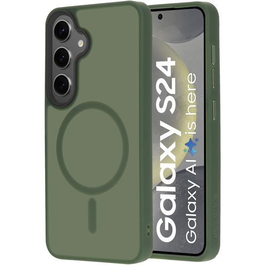Maak gebruik van de voordelen van MagSafe met jouw Samsung Galaxy S24 met het Mobiparts Hardcover Samsung Galaxy S24 backcover hoesje met MagSafe magneet. Het MagSafe hoesje is gemaakt van stevig kunststof en uitgevoerd in de kleur satin green. Je kunt met dit Samsung Galaxy S24 MagSafe hoesje alle MagSafe accessoires bevestigen zoals een oplader of houder.