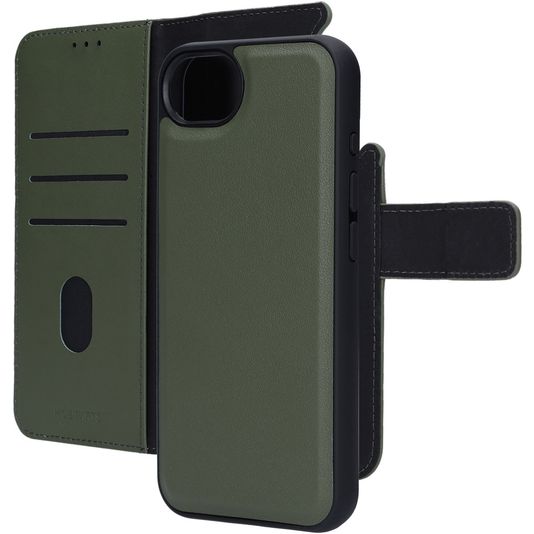Combineer de voordelen van een Apple iPhone 16e bookcase hoesje met een compacte losse backcover. De Apple iPhone 16e 2in1 bookcase van Mobiparts in de uitvoering groen is een unieke 2 in 1 oplossing. Het losse backcover hoesje aan de binnenkant zit met een magneet vast in het boekje en kan desgewenst ook los gebruikt worden.