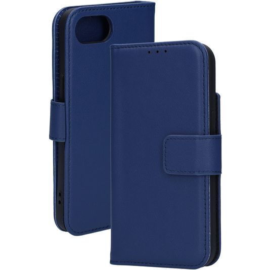 Mobiparts iPhone 16e Hoesje Echt Leer Bookcase Portemonnee - Blauw