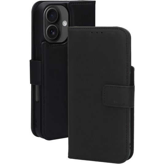 Combineer de voordelen van een Apple iPhone 16 bookcase hoesje met een compacte losse backcover. De Apple iPhone 16 Wallet 2in1 bookcase van Mobiparts in de uitvoering zwart is een unieke 2 in 1 oplossing. Het losse backcover hoesje aan de binnenkant zit met een magneet vast in het boekje en kan desgewenst ook los gebruikt worden.