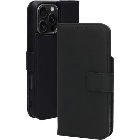 Mobiparts iPhone 16 Pro Max MagSafe Hoesje Echt Leer Uitneembare 2in1 Bookcase Portemonnee - Zwart