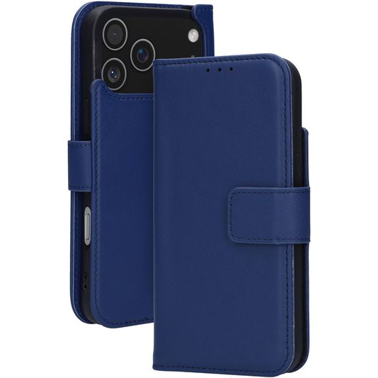 Mobiparts Wallet iPhone 17 Pro Max MagSafe Hoesje Echt Leer Bookcase Portemonnee - Blauw