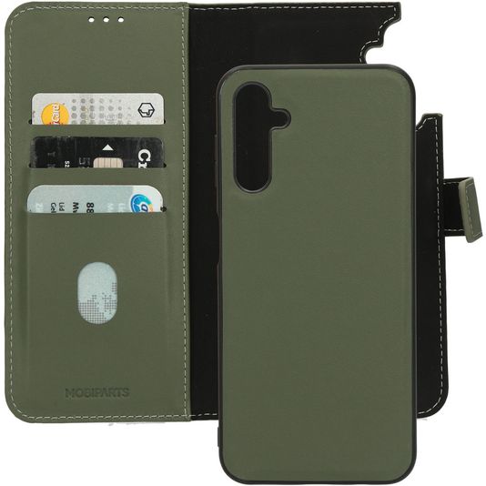 Combineer de voordelen van een Samsung Galaxy A14 bookcase hoesje met een compacte losse backcover. De Samsung Galaxy A14 Wallet 2in1 bookcase van Mobiparts in de uitvoering groen is een unieke 2 in 1 oplossing. Het losse backcover hoesje aan de binnenkant zit met een magneet vast in het boekje en kan desgewenst ook los gebruikt worden.