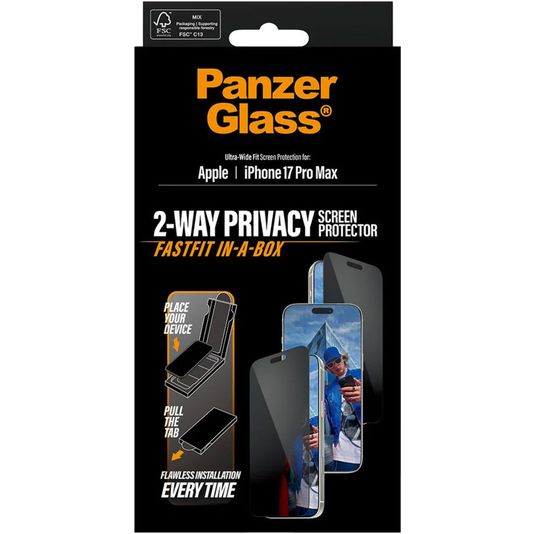 PanzerGlass FastFit iPhone 17 Pro Max Glazen Screenprotector Privacy - Case Friendly - Zwart