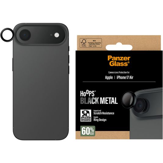 Met alleen een screenprotector is de bescherming van je Apple iPhone Air niet compleet. Met deze PanzerGlass Hoops camera lens protector kun je ook gebruik maken van een hoesje. De camera lens protector zit een hoesje niet in de weg en sluit perfect aan voor een complete bescherming van jouw Apple iPhone Air.