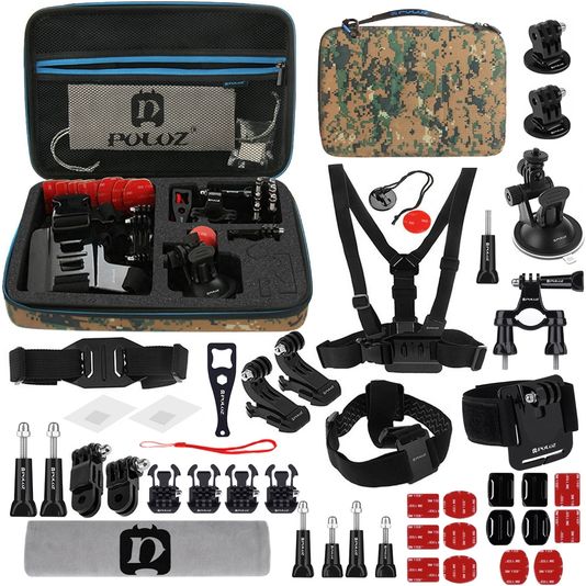 Puluz GoPro Mount Accessoires Starter Pack 45 Delig + Opbergtas Army