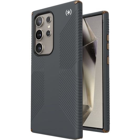 Bescherm je Samsung Galaxy S24 Ultra tegen beschadigingen met de Speck Presidio2 Grip backcover gemaakt van stevig kunststof. Het hoesje is uitgevoerd in de kleur charcoal grey en bedekt de achter- en zijkant van je telefoon. De voorkant blijft met deze backcover vrij, zodat je scherm altijd direct toegankelijk is.