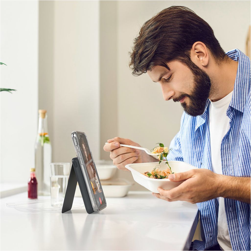 Met deze Speck StandyBank ClickLock powerbank laad je jouw telefoon onderweg op zonder stopcontact. De powerbank is uitgevoerd in de in de kleur grijs. Deze compacte powerbank heeft een capaciteit van 5.000 mAh. Dit is geschikt om de meeste smartphones ongeveer 1 keer volledig op te laden. Als je een tablet wilt opladen heb je een hogere capaciteit powerbank nodig. Bovendien kun je met deze powerbank jouw iPhone 12 of nieuwer draadloos opladen met MagSafe. De powerbank wordt geleverd met een laadkabel om de powerbank zelf op te laden. Om een toestel aan te sluiten heb je een extra kabel nodig. Je hebt bovendien een USB oplader nodig om de powerbank op te laden. Deze is niet inbegrepen.