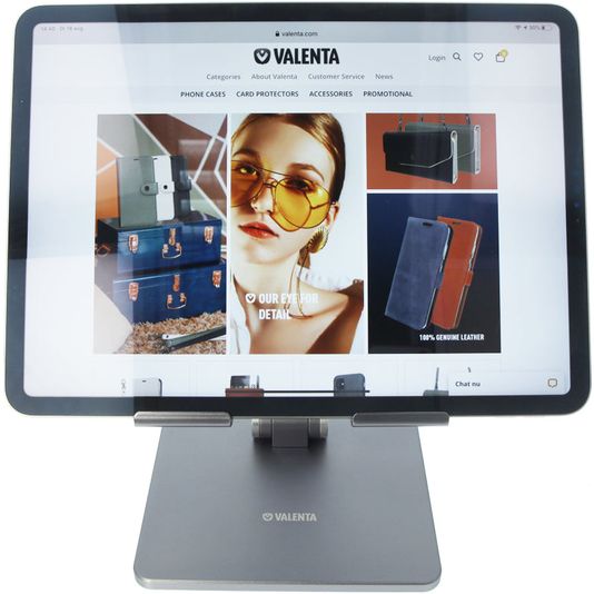 Gebruik je tablet comfortabel en zonder deze vast te moeten houden met de Valenta Aluminum Foldable tablet standaard. De Valenta Aluminum Foldable standaard voor tablets is gemaakt van en uitgevoerd in de kleur spacegrijs.