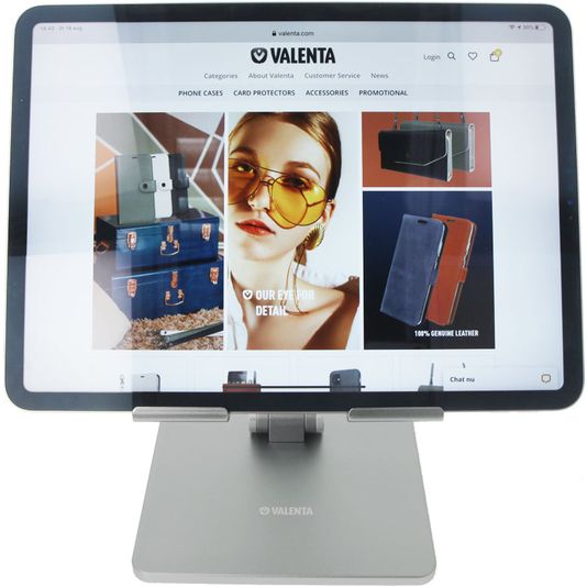 Gebruik je tablet comfortabel en zonder deze vast te moeten houden met de Valenta Aluminum Foldable tablet standaard. De Valenta Aluminum Foldable standaard voor tablets is gemaakt van en uitgevoerd in de kleur zilver.