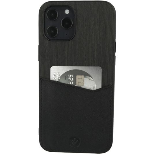 Valenta Card Slot iPhone 12 Pro Max Hoesje Echt Leer Backcover met Pasjeshouder - Zwart