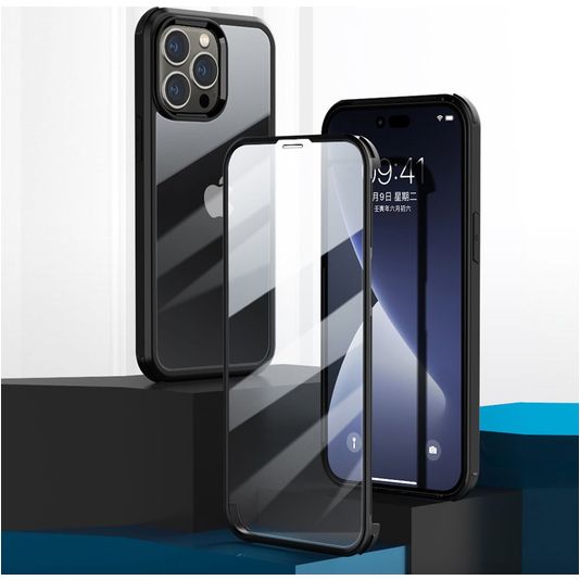 Valenta Full Cover iPhone 14 Pro Max Hoesje Gehard Glas Backcover Shockproof - Transparant / Zwart