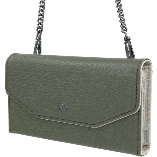 Combineer de stijl en bescherming van een Apple iPhone 11 clutch en de handzaamheid van een backcover met de Apple iPhone 11 2in1 clutch van Valenta in de uitvoering green mode. Het backcover hoesje zit met een magneet vast in de clutch en kan desgewenst ook apart gebruikt worden.